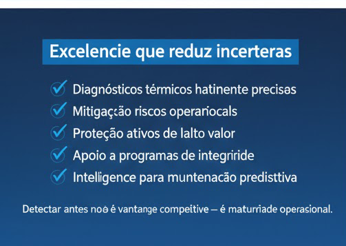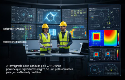 A termografia aérea conduzida pela CAF Drones permite que organizações migrem de uma postura reativa para uma estratégia verdadeiramente preditiva.